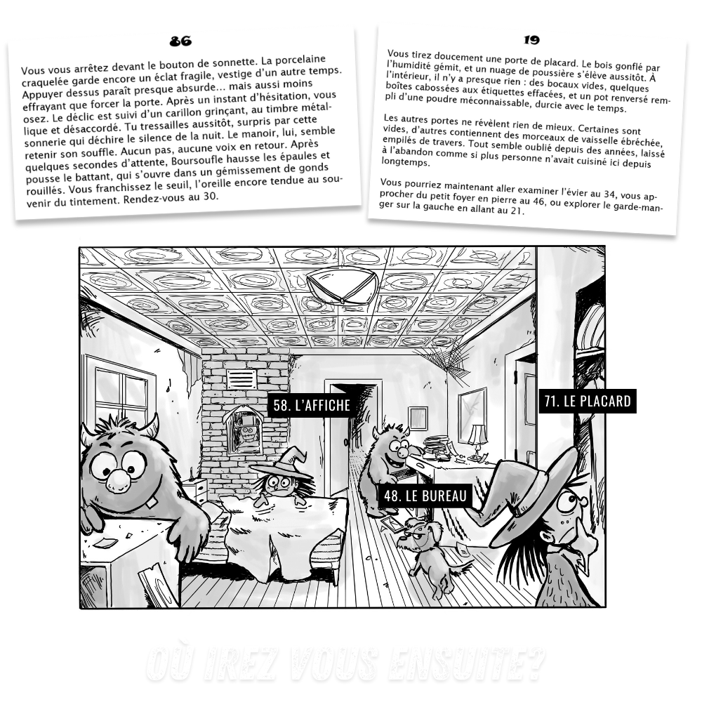 Boursoufle is big and clumsy, Pustule is sharp and curious — and together they explore the spooky Gloumsburry Manor. Strange rooms, creepy noises, and hidden secrets await… and you decide what happens next.
