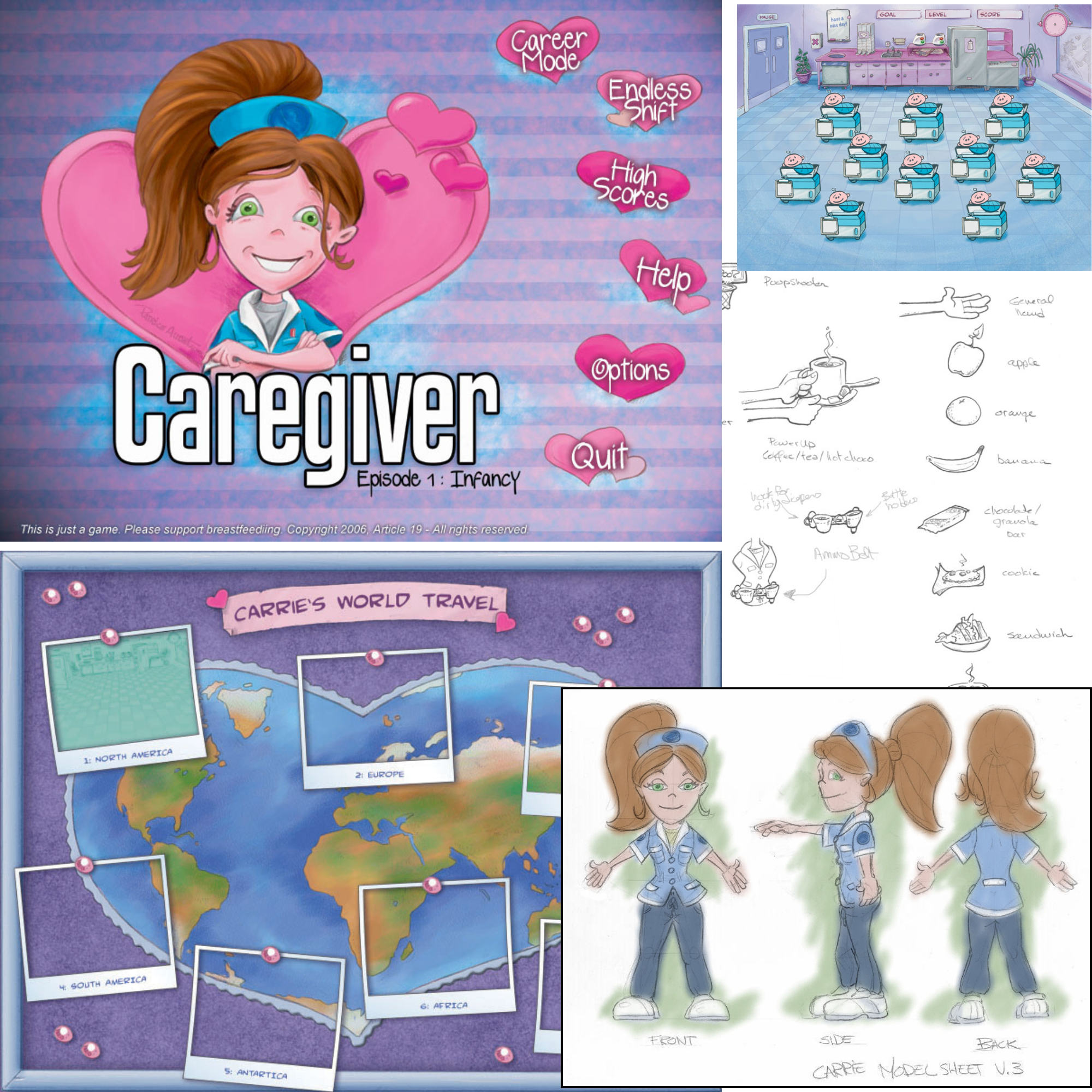 A video game series I made, complete with character design, animation sequences, transition and splash screens, in-game assets, etc.