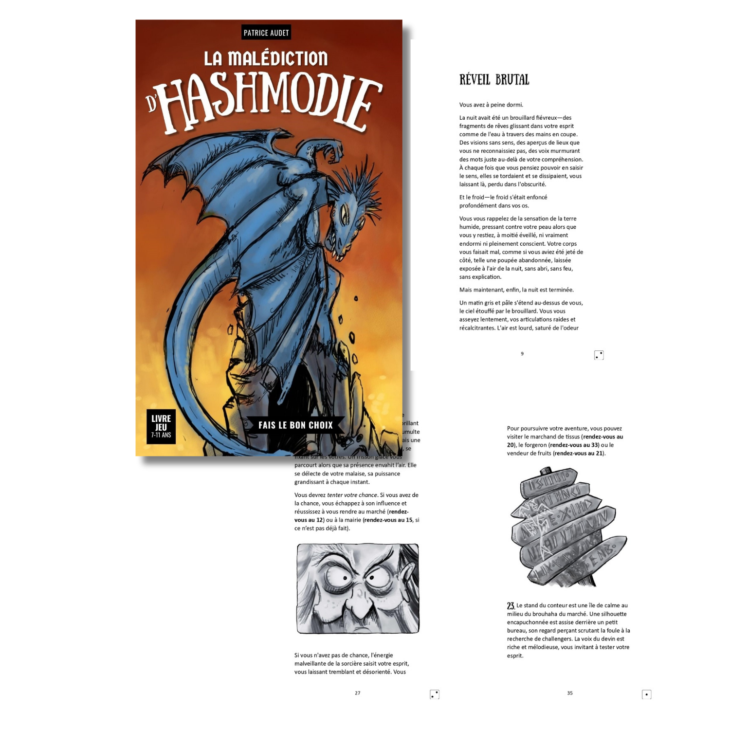 Plongez dans l’aventure interactive complète de La malédiction d’Hashmodie au format numérique, pour lire, jouer et choisir votre chemin directement chez vous.